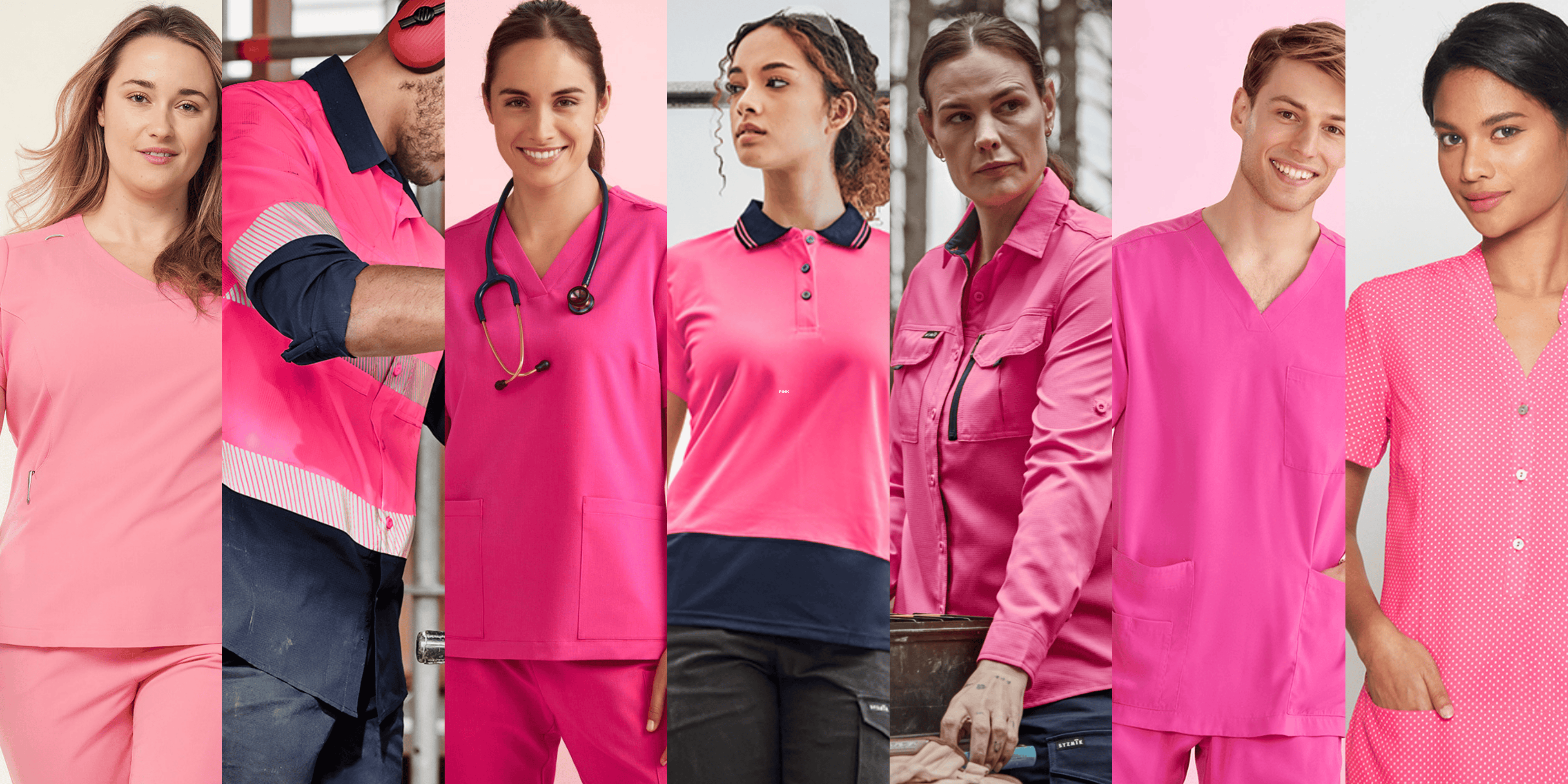 Pink is available across the the range, from workwear to healthcare